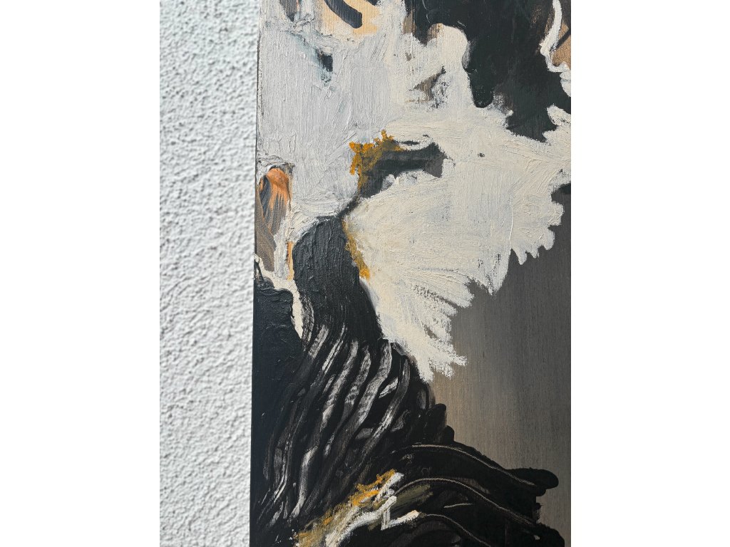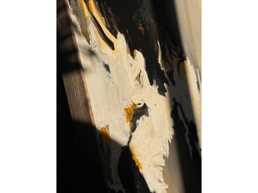 Obraz malován technikou mixed media. Použitá média – akryl, úhel, oil sticks.